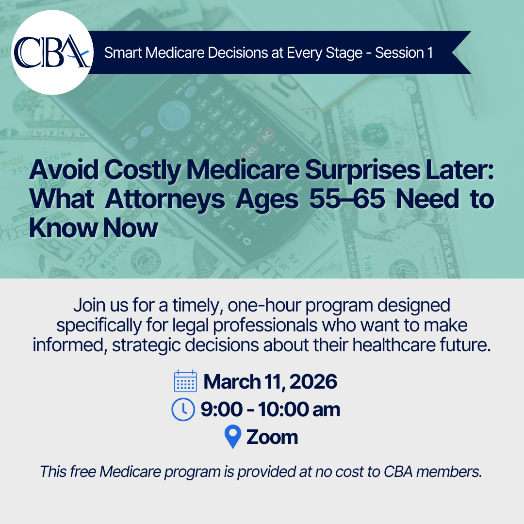 Avoid Costly Medicare Surprises Later: What Attorneys Ages 55 to 65 Need to Know Now is a timely, one-hour program designed specifically for legal professionals who want to make informed decisions before transitioning to Medicare.